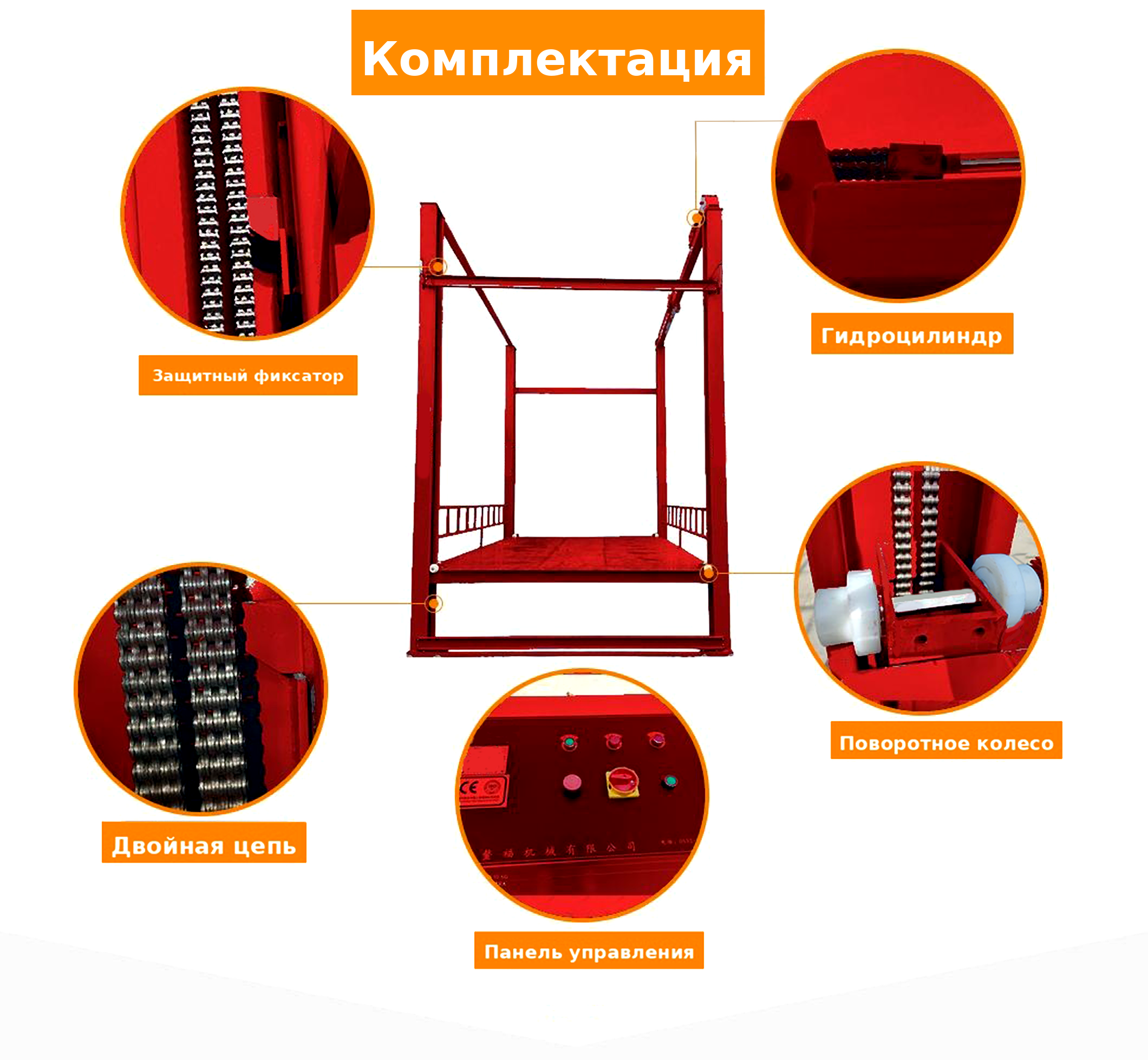 Конструкция с четырьмя стойками обеспечивает высокую устойчивость и делает подъемник самонесущим. Система подъема на сдвоенных цепях гарантирует повышенную надежность и безопасность эксплуатации даже при интенсивной нагрузке.