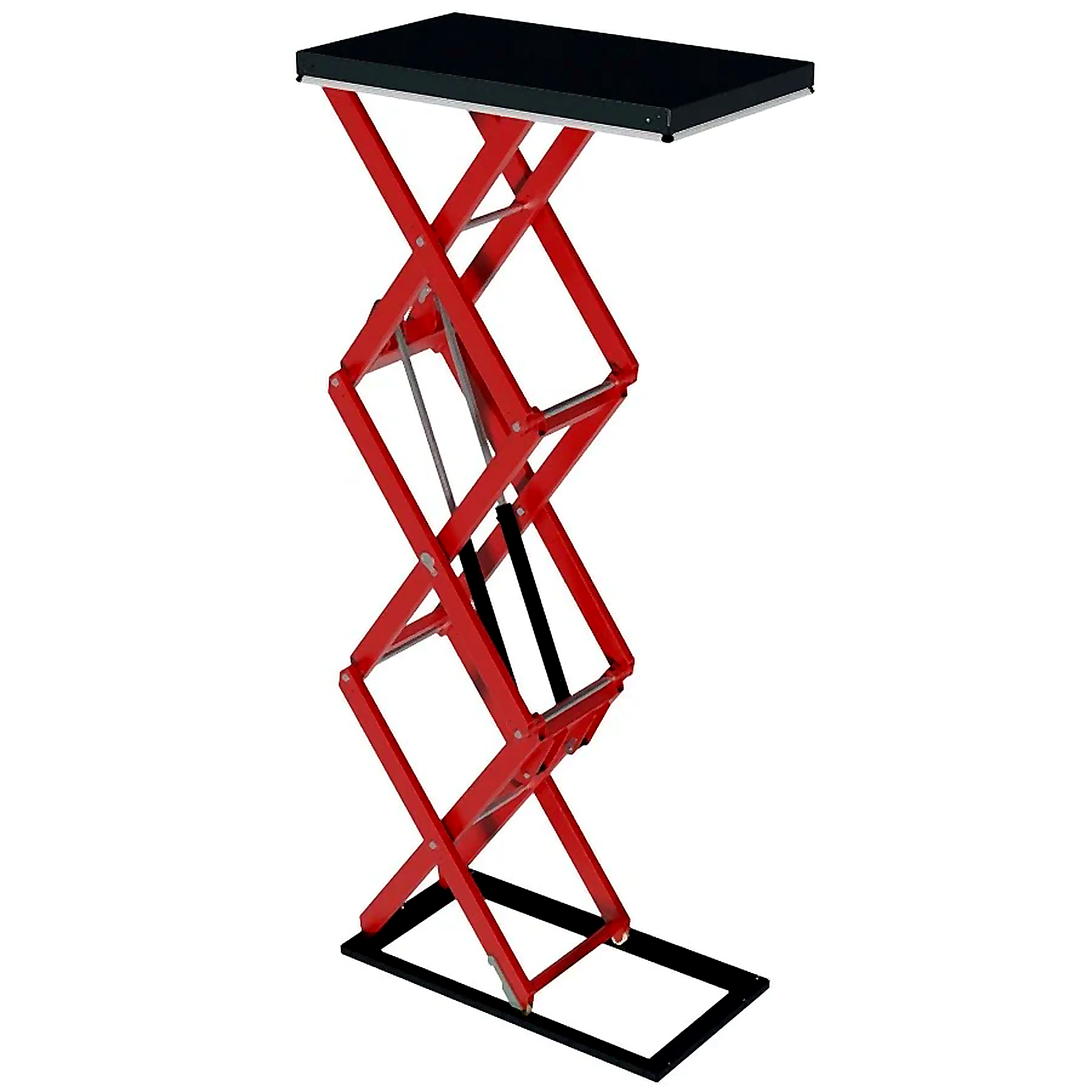 При вертикальной компоновке «три над тремя» реальный ход подъёма достигает ≈180 % длины платформы. Пример: для платформы 2000 мм расчётный ход составляет около 3600 мм. Такая техника востребована на многоуровневых складах, в производственных зонах, при совмещении уровней пола и рамп.